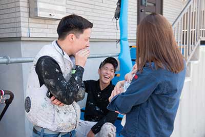 町田の雨漏り・外壁相談センターは、代表の香取を中心に、スタッフ同士の信頼関係がしっかりと築かれたチームで日々の工事に取り組んでいます。現場では職人同士が自然と声をかけ合い、状況に応じてさっと手を差し伸べる──そんな連携の良さが、施工の丁寧さや仕上がりの質にもつながっています。